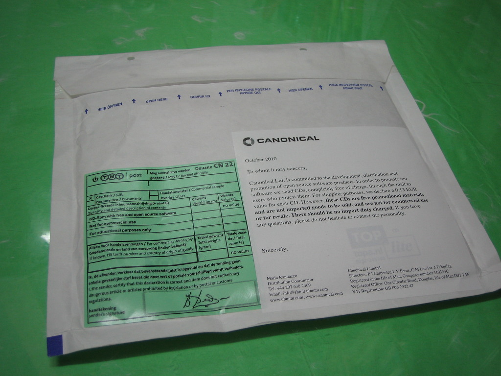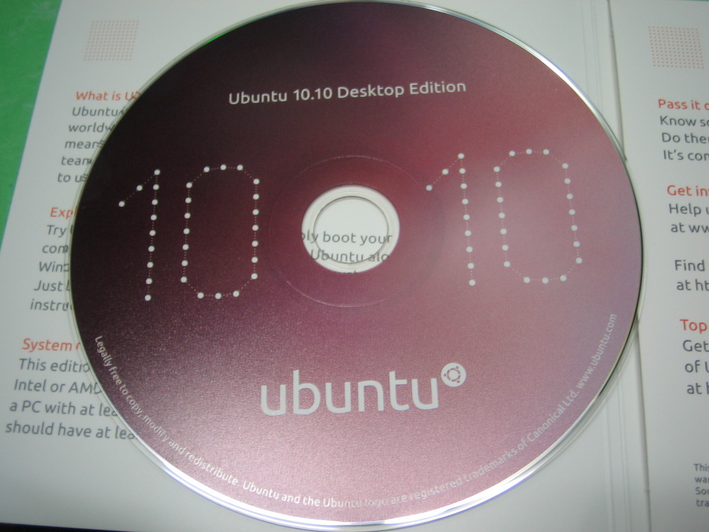 기념품으로 간직하고자 신청한 우분투 10.10 CD가 도착했다.