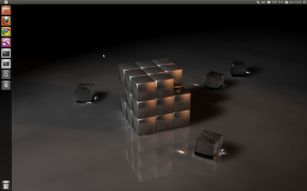 전체적인 Unity UI는 좋고 첫 실행 때 Unity 쉘이 뜨지 않았지만 클래식 데스크탑에서 그놈 설정파일을 지우자 잘 작동했으며 아직까지 튕긴 적도 없다. (아무래도 컴피즈의 '데스크탑 큐브'와 충돌하는 것 같다. 어쨌거나 새로운 데스크탑 환경인 만큼 설정 파일을 지우고 새 마음으로 다시 꾸며보도록.)