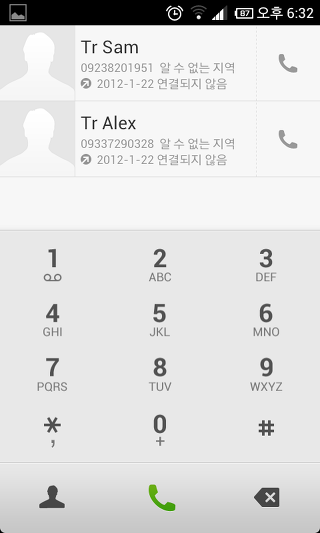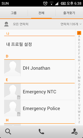 전화번호부입니다. ICS 순정과는 확연히 다른 모습을 보이고 있습니다.