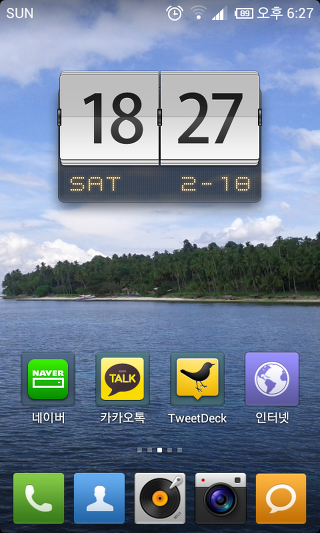 홈화면입니다. 전화, 연락처, 메시지 아이콘이 바뀐 것이 깔끔하고 좋네요.