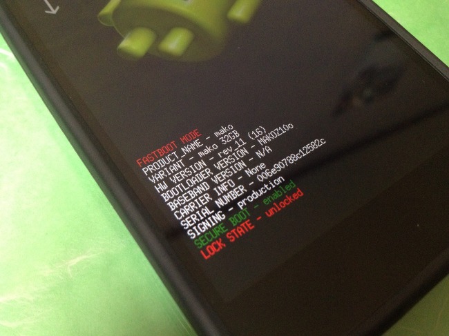 특이한 점은 옵쥐는 언락시 넥서스 4의 부트로더가 덮어씌워진다는 점. 심지어 부트로고도 구글이 된다.