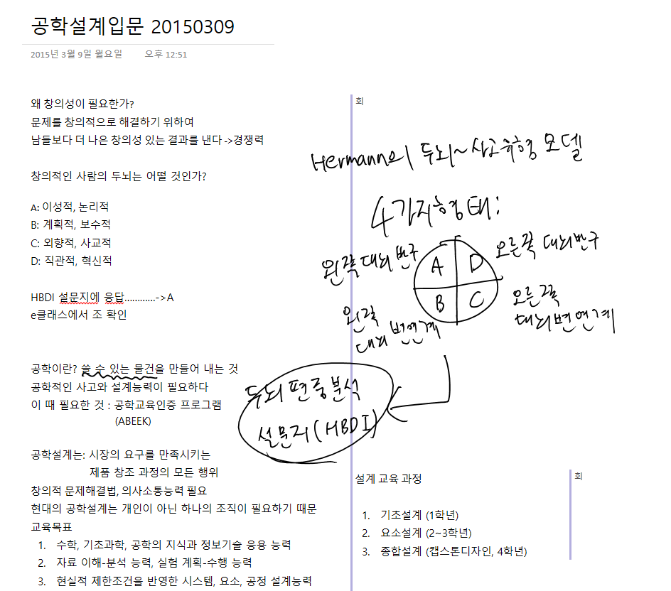 아니면 이런 식으로 강의 시간에 필기를 하거나.