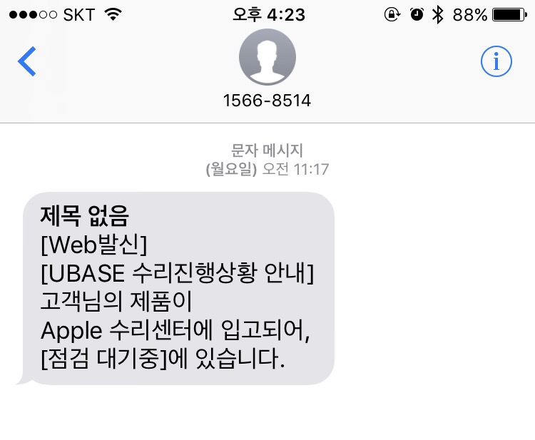 8일 (월요일) 에 진단센터에 입고되었다는 문자를 받았고, 11일 (목요일) 아침에 리퍼 제품이 센터에 도착했다. 점심 시간에 가져왔다.