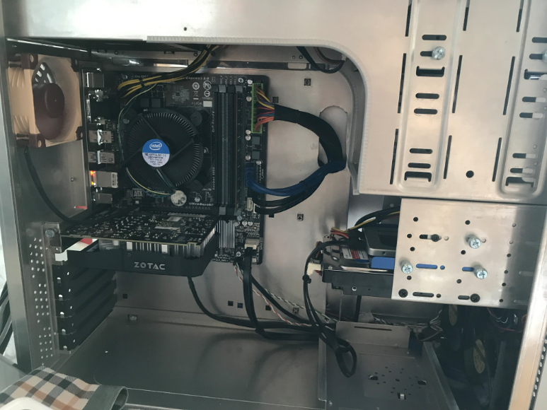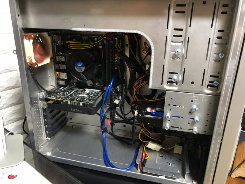 그런 PC의 메인보드를 갑자기 사제 ATX 케이스로 옮기니 표준 USB 3.0 헤더 미지원이나 케이스에 붙어 있던 온도 센서 미연동 등 자잘한 문제가 발생할 수밖에 없었고 결국 서버와 데스크탑을 용도분리하기로 결정하면서 라이젠 업글 전까지 임시로 쓸 중고 메인보드와 CPU를 사 왔다.